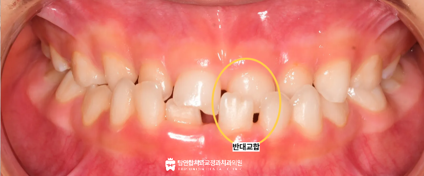 앞으로 튀어나오는 형태인 반대교합의 경우에는