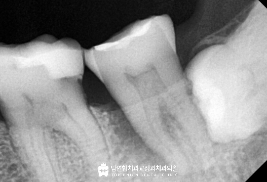 작은 x-ray 사진에서는 해당 어금니의 근심 쪽 잇몸뼈가