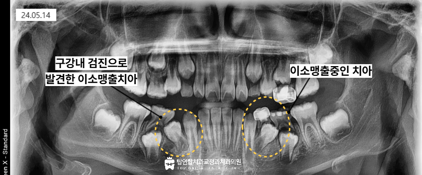 구강 내 검진을 통해서 발견한 이소맹출치아는